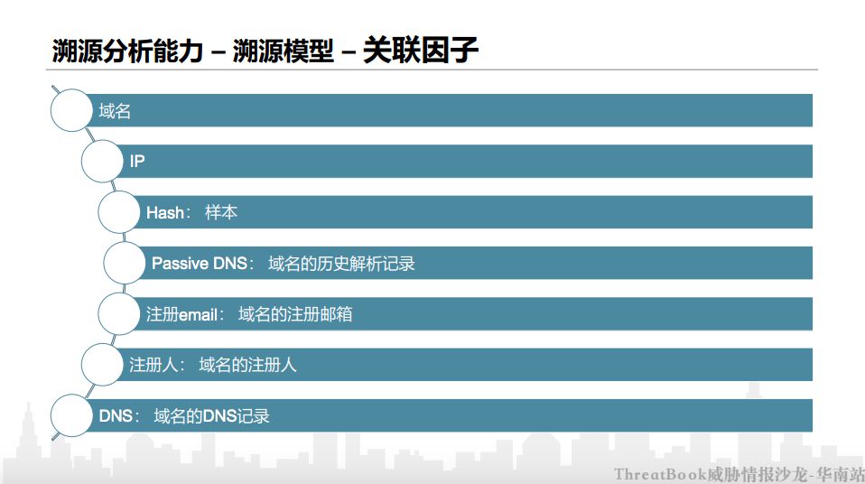 刚刚说到样本分析能力,我们在溯源分析的时候,应该如何着手去做呢?其实有几个步骤,首先就是我们那个溯源模型里要有一些关键因子。