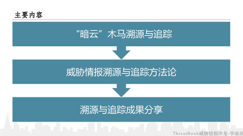 这是我们说的暗云木马追踪的一个案例。下面分享一下,我们在这个事件中抽象出的追踪溯源方法论。