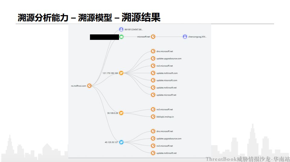 其实我们所说的溯源模型就是微步在线的自动追踪溯源的系统(Z),Z系统最大的特点就是支持一键自主溯源,支持对域名、IP、Hash等因子的分析。另外,Z系统里继承了一些智能化分析模型,能够去除无关的干扰。第三个特点是可以“一窝端”,最典型的就是暗云木马,输入一个域名,输出背后攻击者的80多条资产,攻击者不管用什么方式发起攻击,都会被拦截掉。