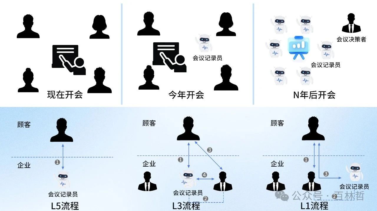 图2:未来无人企业开会的变化/不同级别的业务流程