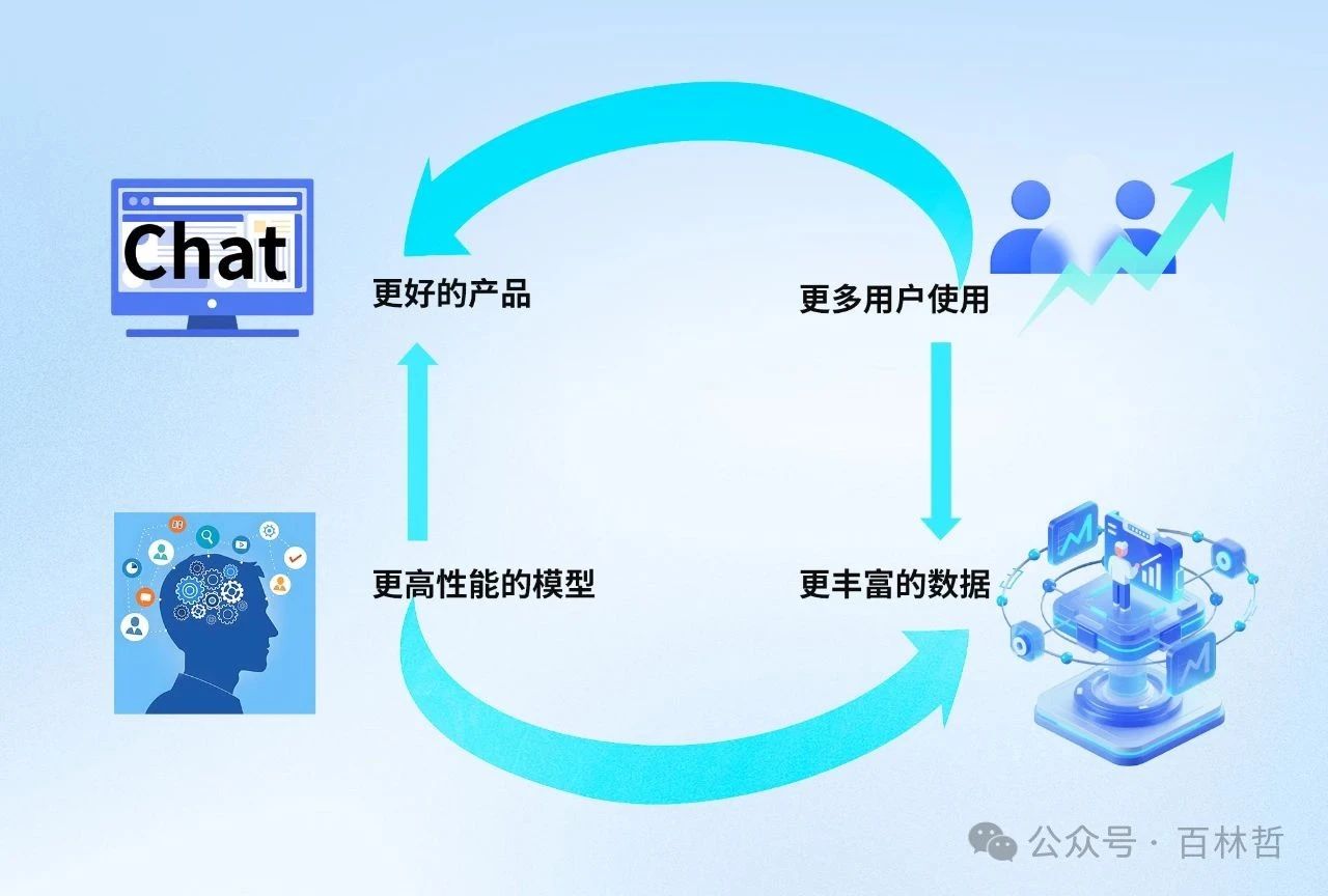 在算力、数据、算法的三要素中,大模型产业通过硬件基础+分布式框架,重点解决算力问题后,数据的数量与质量,便成了大模型训练的性能影响因素。预训练中,数据常常可通过购买、合作、抓取等方式,并进行数据清洗,无需人工标注。但,进入后阶段,RL与微调时,都需要人工标注和样本数据,这些数据获取,一方面是专业人士数据标注,以及采购专业数据公司和云厂商数据服务;另一方面是获取合规性的公域或三方数据、接入企业私域数据;最后是搜索用户使用过程中的反馈,这些数据加入训练,大模型的性能和使用体验,将得到极大提高,也将启动数据飞轮,走向自我强化的循环。
