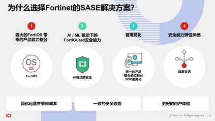 其统一融合与整合能力——由 FortiOS、FortiGuard、FortiClient 与集中管理支撑——兑现了其他 SASE 方案仅停留在承诺层面的目标:一个融合平台,简化运维、提升性能、降低风险。