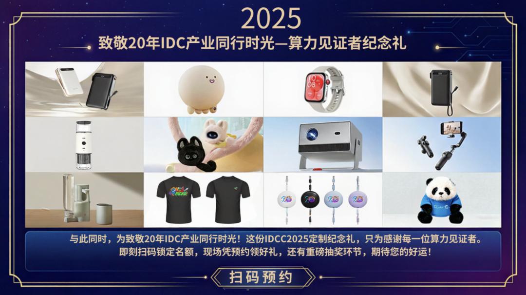 与此同时,致敬20年IDC产业同行时光!这份IDCC2025定制纪念礼,只为感谢每一位算力见证者。即刻扫码锁定名额,现场凭预约领好礼,还有重磅抽奖环节,期待您的好运!