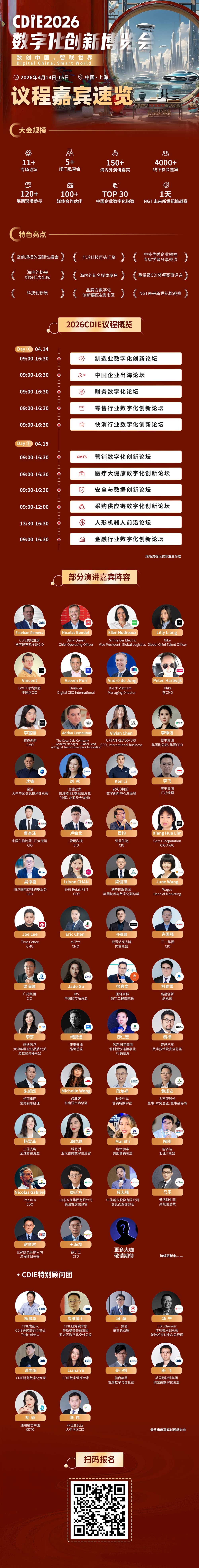 本次CDIE2026数字化创新博览会已成功邀约多位全球顶尖企业数字化领袖,他们将齐聚上海,分享前沿洞察。
