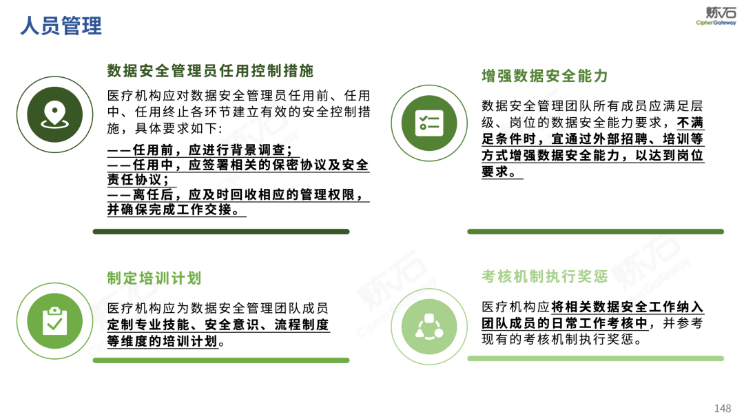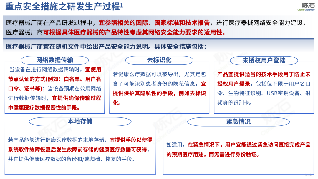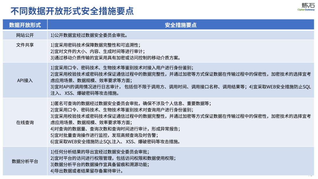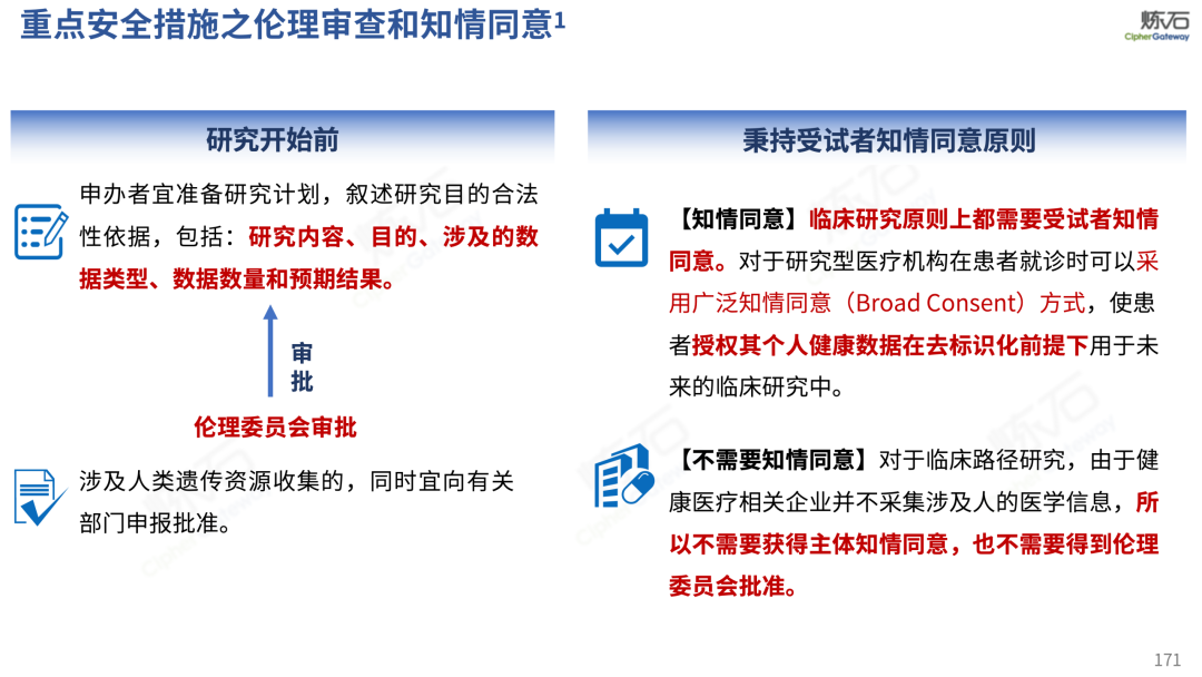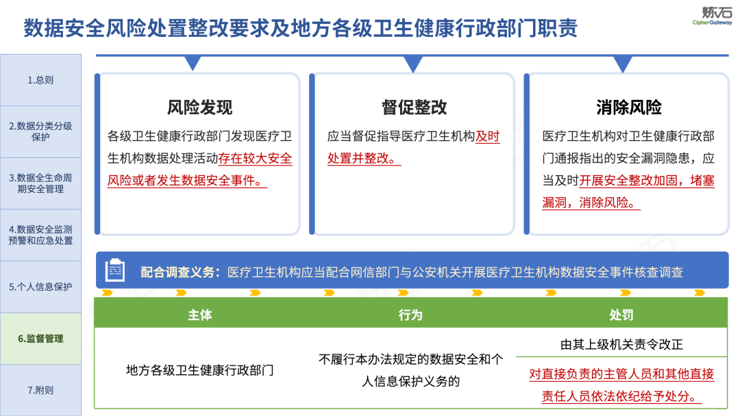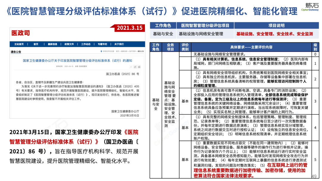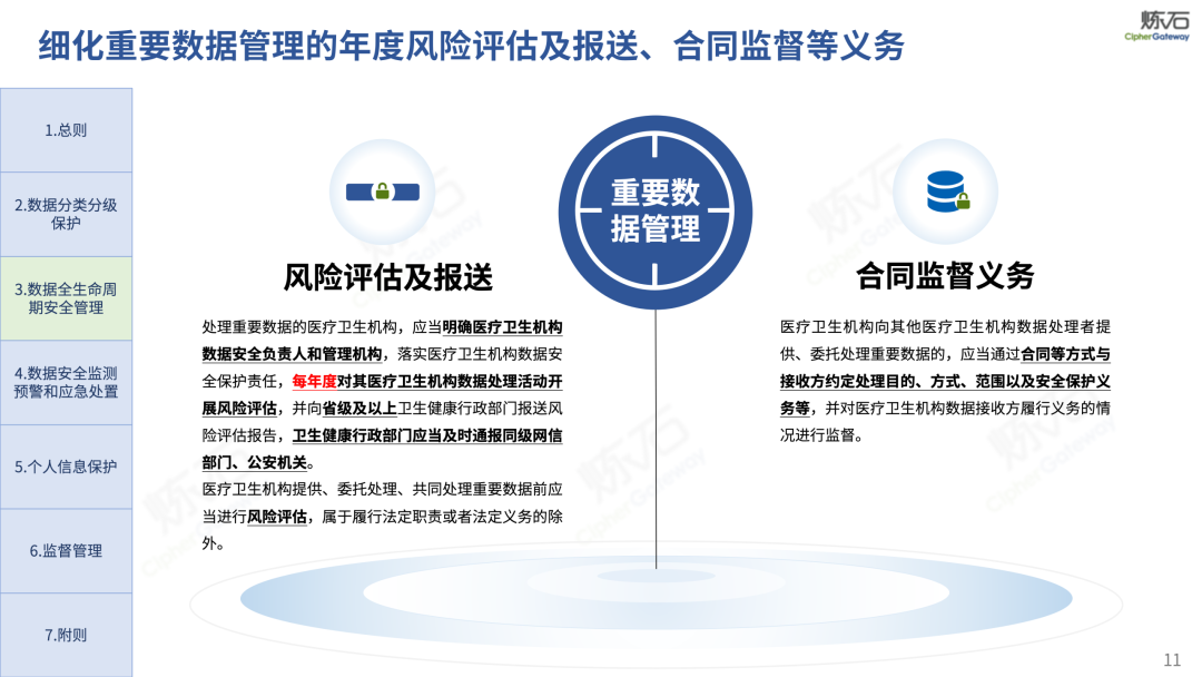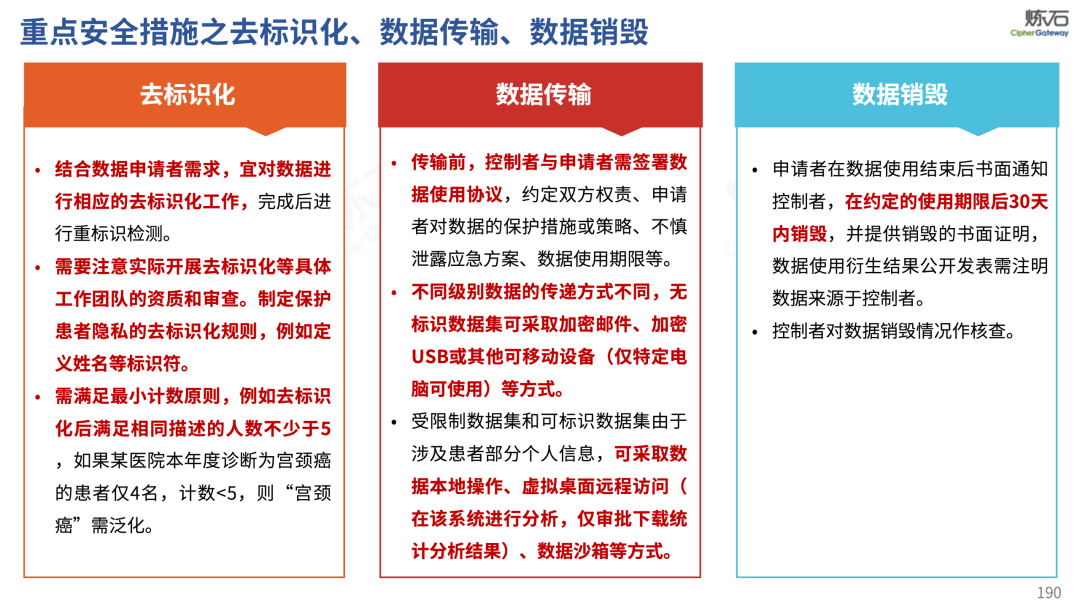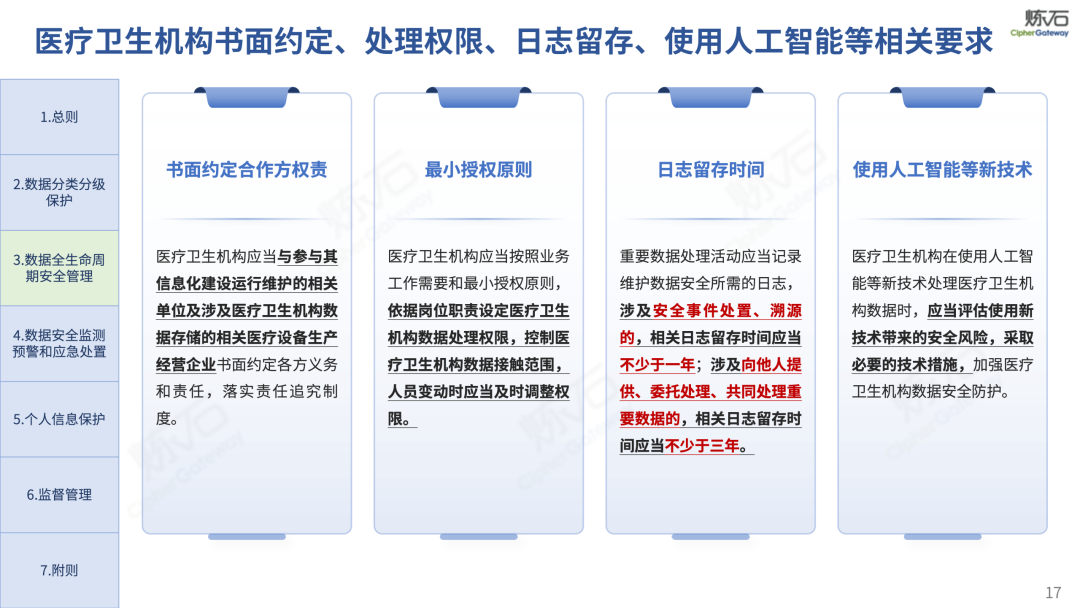 场景为用,落地八大典型安全路径。一图胜千言,炼石以图解形式对《办法》开展系统性解读,聚焦医疗数据安全制度体系,全面梳理医疗行业国家政策、技术与管理要求以及典型场景安全需求,结合医疗卫生安全、电子病历和智慧医疗等国家政策规定,围绕数据分类分级、流通数据保护、数据安全技术和组织管理保障等关键维度,细化医生调阅数据安全、患者查询数据安全、临床研究数据安全、二次利用数据安全、健康传感数据安全、移动应用数据安全、商保对接数据安全、医疗器械数据安全等八大典型场景的安全落地路径。同时,立足医疗行业实践,提炼形成可操作、可落地的医疗数据安全建设方案。