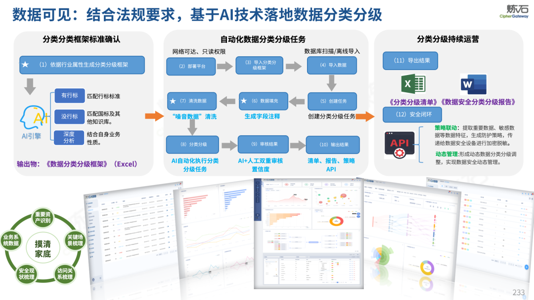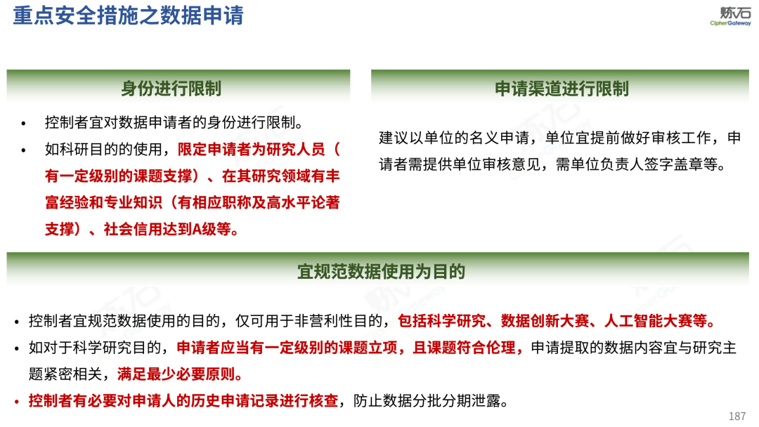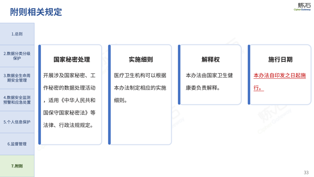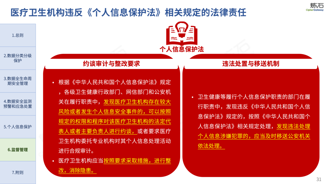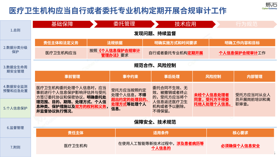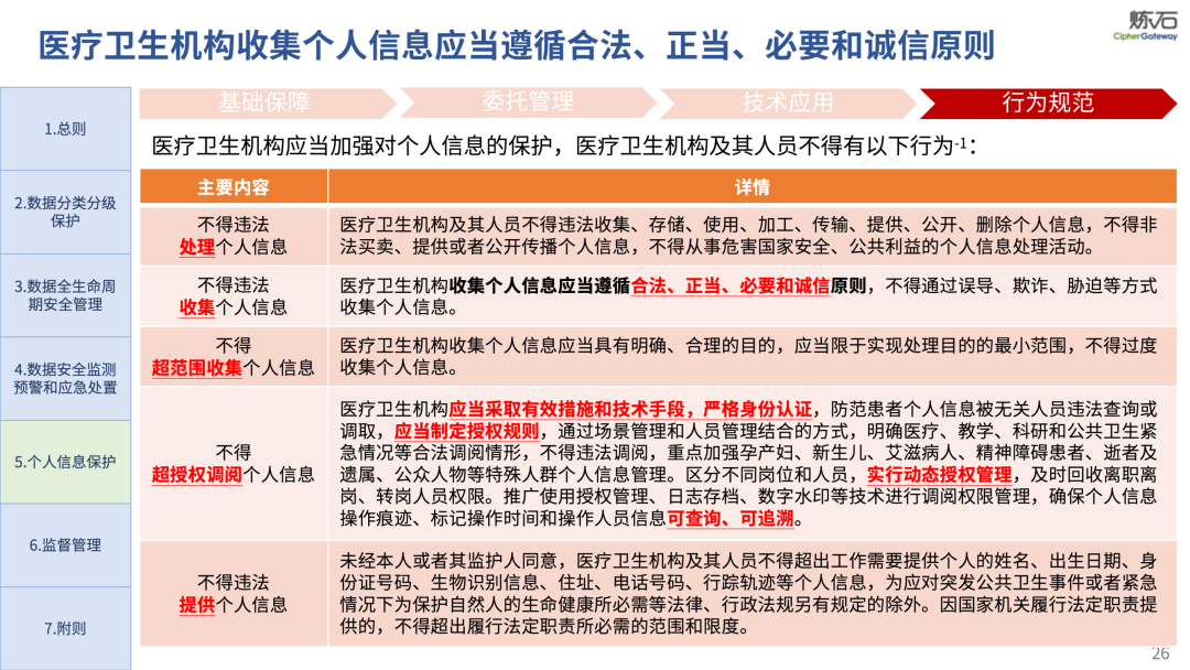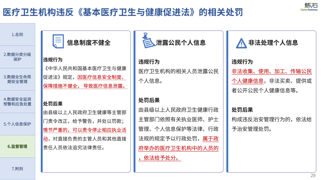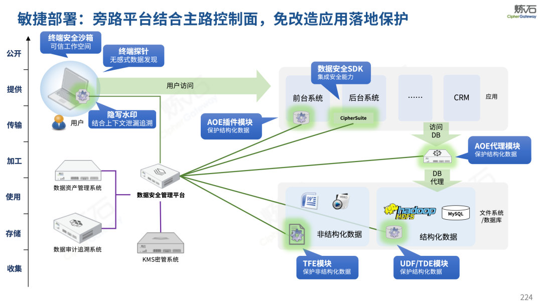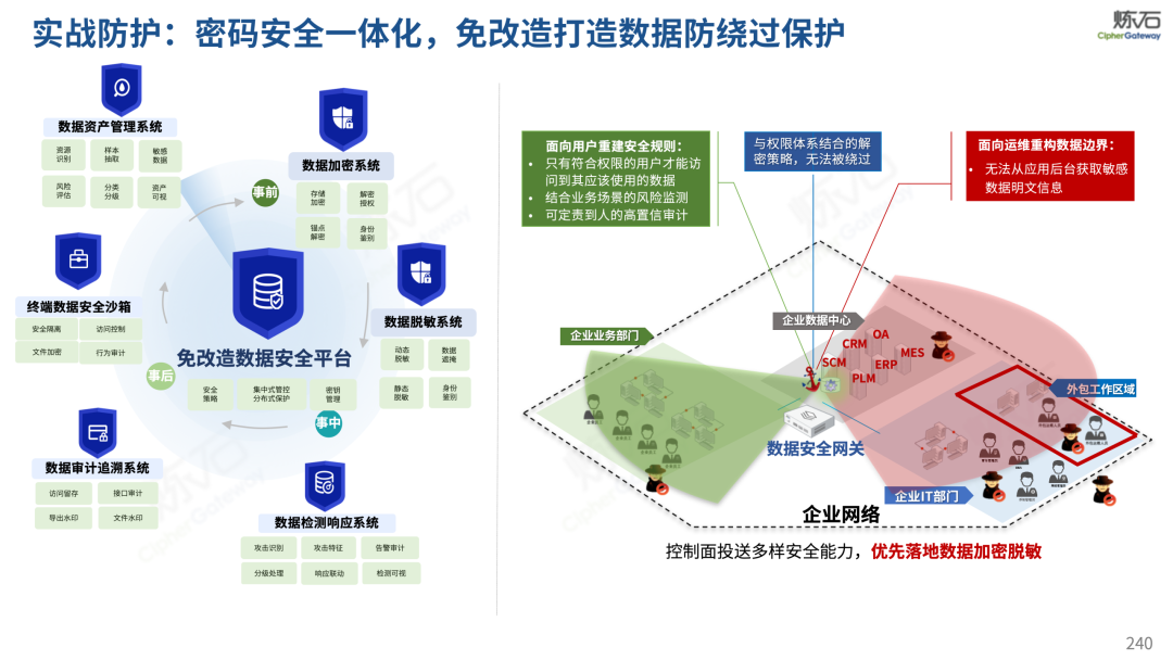 场景为用,落地八大典型安全路径。一图胜千言,炼石以图解形式对《办法》开展系统性解读,聚焦医疗数据安全制度体系,全面梳理医疗行业国家政策、技术与管理要求以及典型场景安全需求,结合医疗卫生安全、电子病历和智慧医疗等国家政策规定,围绕数据分类分级、流通数据保护、数据安全技术和组织管理保障等关键维度,细化医生调阅数据安全、患者查询数据安全、临床研究数据安全、二次利用数据安全、健康传感数据安全、移动应用数据安全、商保对接数据安全、医疗器械数据安全等八大典型场景的安全落地路径。同时,立足医疗行业实践,提炼形成可操作、可落地的医疗数据安全建设方案。