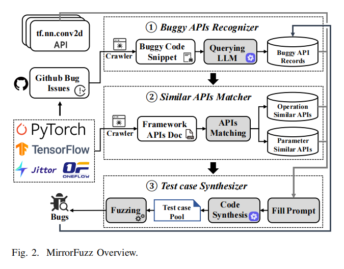 MirrorFuzz:利用LLM与共享漏洞实现深度学习框架API模糊测试论文通过实证分析表明,主流深度学习框架(如TensorFlow、PyTorch等)中的大量API存在设计和实现的共性,由此导致同类甚至同源的缺陷可在不同API之间、甚或不同框架间复现和传播。