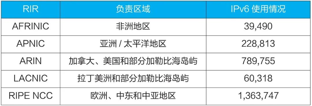 区域IPv6地址分配与使用情况IP地址通常是按层级分配的。用户的IP地址由互联网服务提供商(ISP)分配;ISP从本地互联网注册机构(LIR)、国家/地区互联网注册机构(NIR),或从其相应的区域互联网注册机构(RIR)获得IP地址分配;而互联网号码