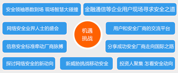 大会目的: 帮助各行业了解网络安全的现状和动向,助中国网络信息安全企业抓住全球化网络安全的机遇,推动技术创新,开拓新市场特别是快速增长的国际市场,迎接国内外安全行业的挑战。